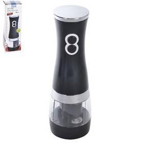 Mlýnek na pepř je velmi praktický pomocník při dochucování potravin. Mlýnek je poháněný čtyřmi tužkovými bateriemi a stiskem tlačítka sám pepří. Díky modernímu designu je vhodný i jako dekorace na stole. Materiál: plast, nerez Barva: stříbrná, černá...